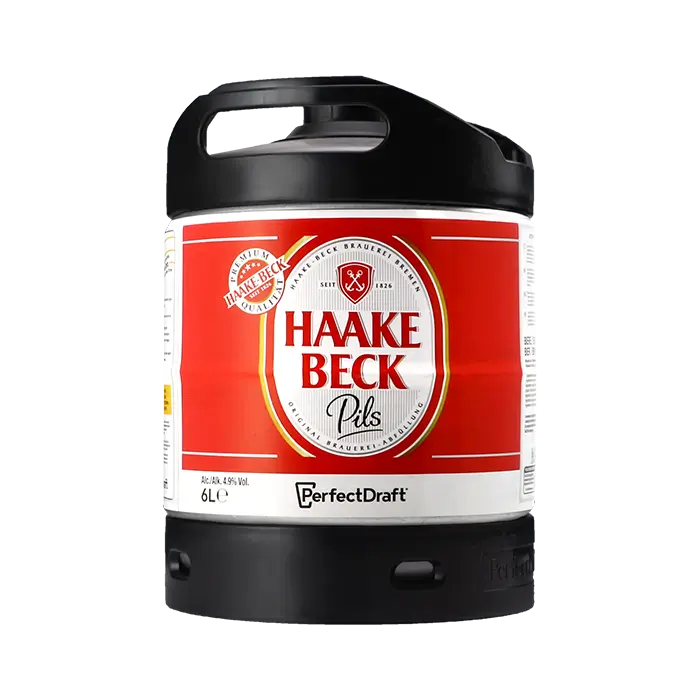 Look, we have the Haake Beck PerfectDraft 6-liter keg here, and it's awesome! The beer comes straight from the Haake Beck brewery in Bremen, and they really know how to brew a beer. The brewery has a long history dating back to the 19th century, and their beers are known for their quality and unique taste. Haake Beck is an institution in Bremen, and this PerfectDraft keg brings the authentic beer experience straight to your home.