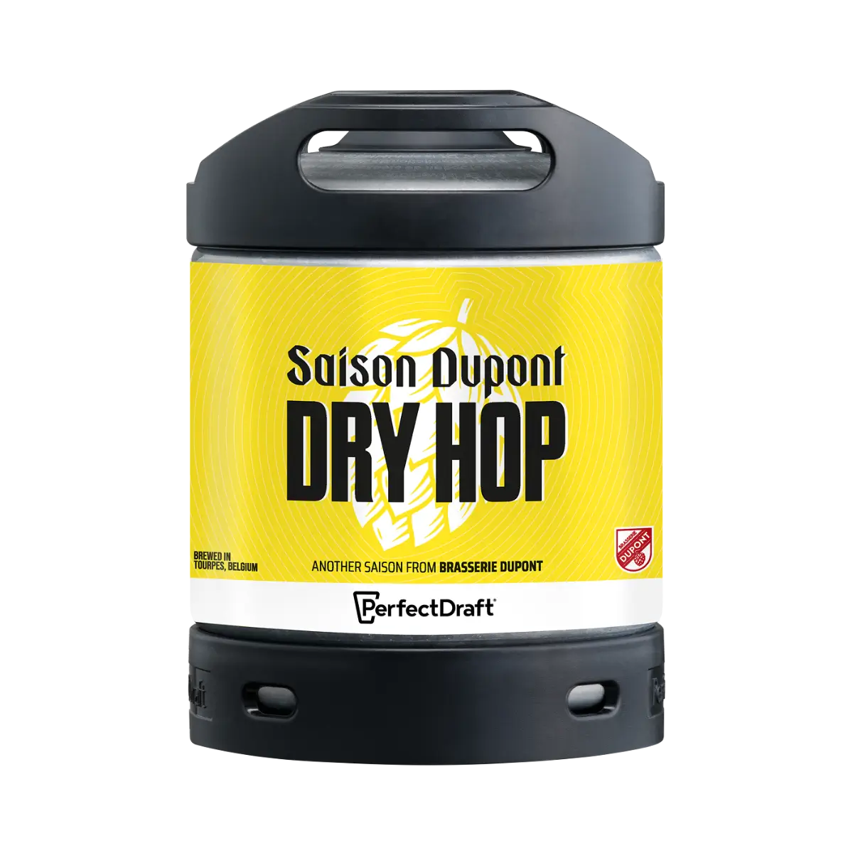 Saison Dupont Dry Hop, especially in the PerfectDraft 6L keg version, is a hazy golden Belgian farmhouse ale that offers a complex profile blending fruity, spicy, and herbal notes.
