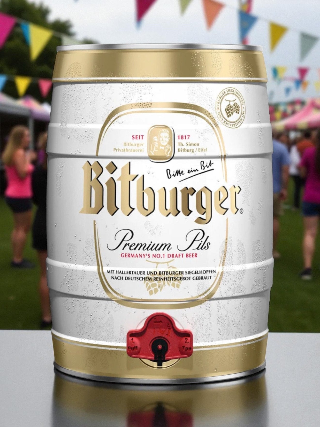 The Bitburger Pils Mini-Keg is a 5-litre (approximately 8-pint) pressurised container of Bitburger Premium Pils, the German brewery's most famous and popular beer, especially as a draught offering in Germany.